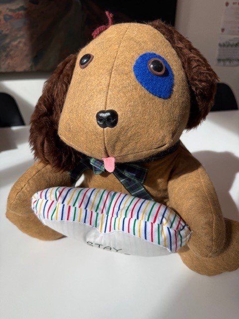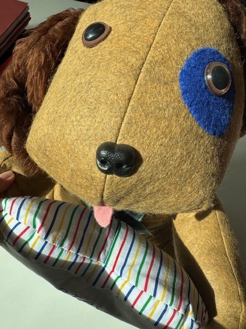 The mascot is not perfect but it is special.  It has wonky ears and two scars and a patch round its eye.  It is proud of itself and encourages others to be unique.  It wears all the school badges on his special cape.